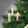 Kabellose LED-Kerzen "Lumix Superlight Mini" mit 12 batteriebetriebenen Einzelkerzen, Höhe 9cm, beweglichen Befestigungsklammern und warmweißen LEDs zum beliebigen Platzieren am Baum, mit IR-Fernbedienung, 5-stufig dimmbar, Flackerlicht 2-stufig und Timer-Funktion mit automatischer Abschaltung nach 4 Stunden einstellbar, Reichweite ca. 10m, Batteriebetrieb je Kerze 1x Micro und Fernbedienung 1x Lithium-Batterie CR 2032 (inklusive)